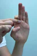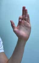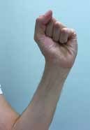 Bend each of your fingers in turn towards your palm and hold for 3 seconds. | With the other hand, push each finger towards your palm and hold for 3 seconds. | Make a fist and hold for 3 seconds |